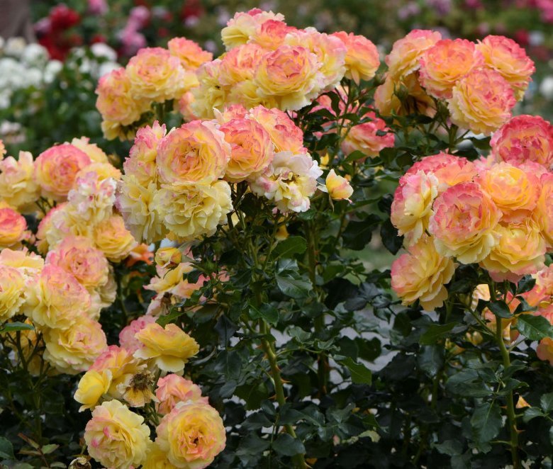 Прекрасный, устойчивый к болезням сорт с яркими двухцветными розочками.